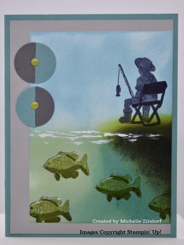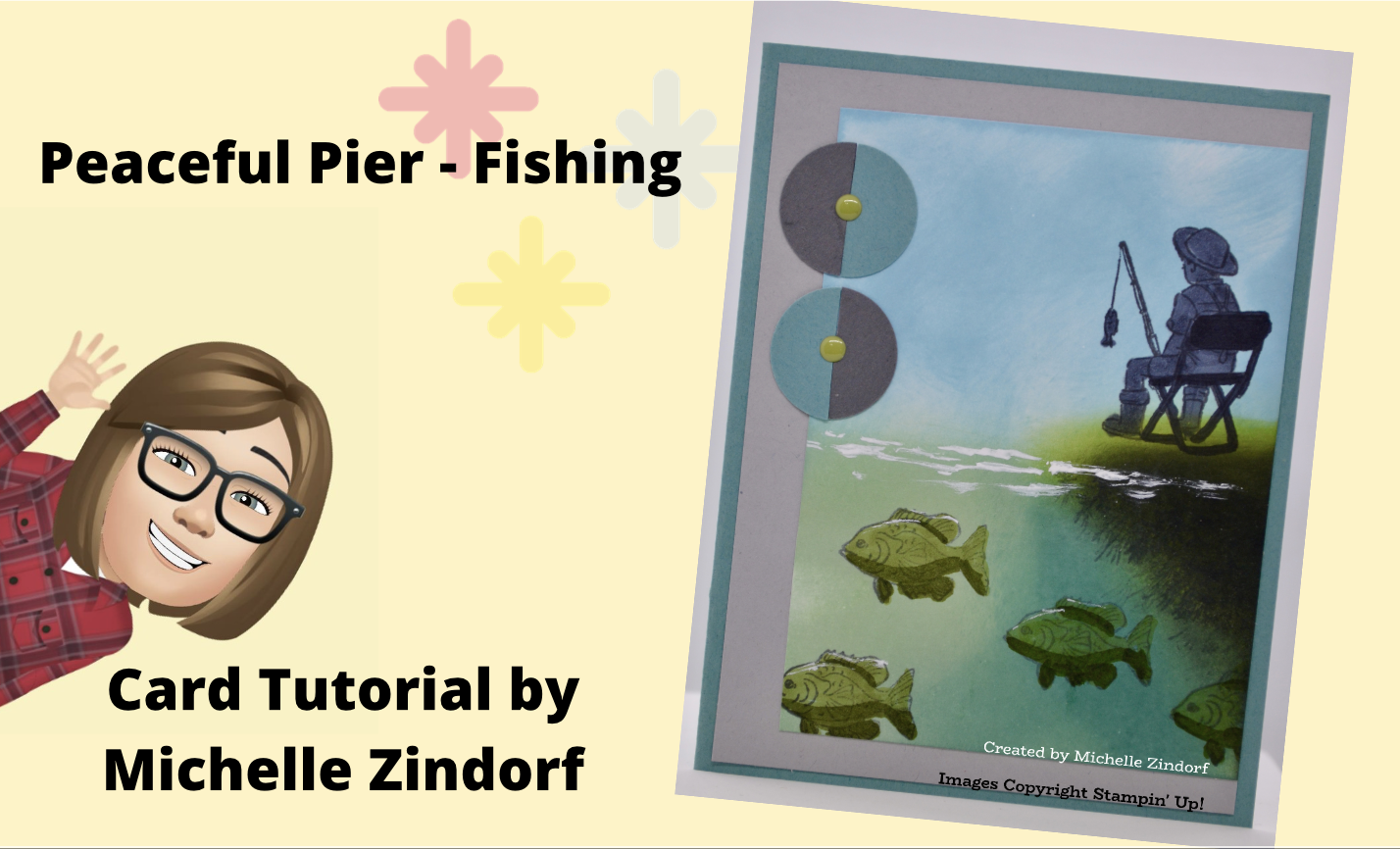 I have a masculine fishing card for you today using the Peaceful Pier stamp set by Stampin’ UP! This scene shows both, above and under water, fun right! Check out my free step by step video below.