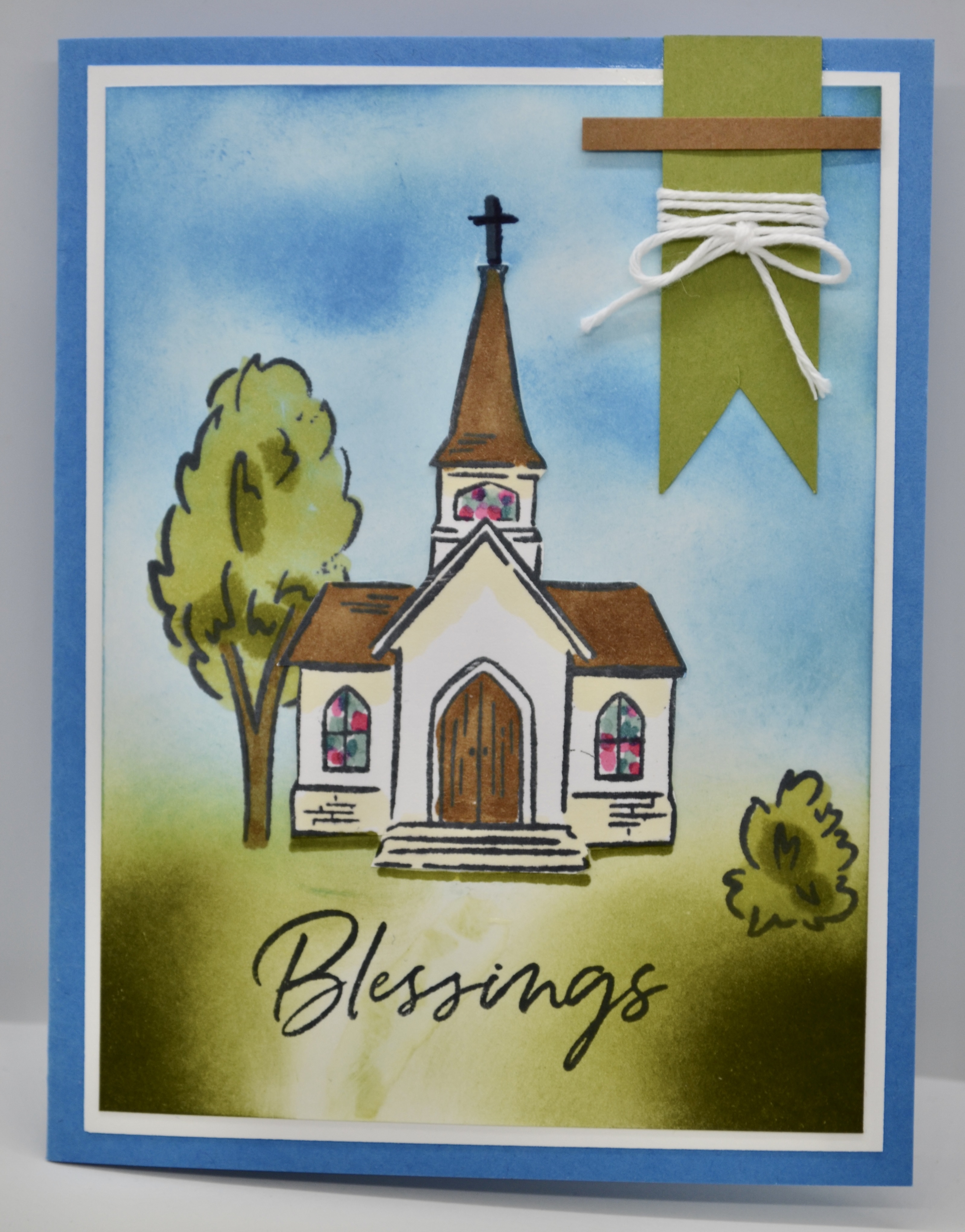 I found myself playing with the new Blessed Beginnings Stamp set today and created a the free video for you.  Such a versatile set!   A lot of times I have trouble coming up with Wedding card ideas and this stamp set is perfect for that and much more.  Think Easter, Baptisms, encouragement cards for fellow church members etc.  Plus, it has great tree and bush images to go along with the beautiful church image.  These stamps can stand alone in your projects to create so many more scenes.
